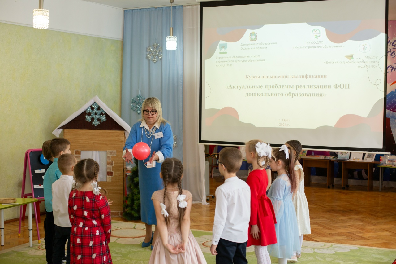5 февраля 2026г. на базе МБДОУ "Детский сад комбинированного вида №80" г.Орла состоялись Открытые мероприятия для курсов повышения квалификации "Актуальные проблемы реализации ФОП дошкольного образования" Института развития образования Орловской области.