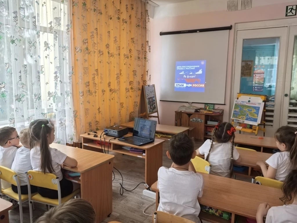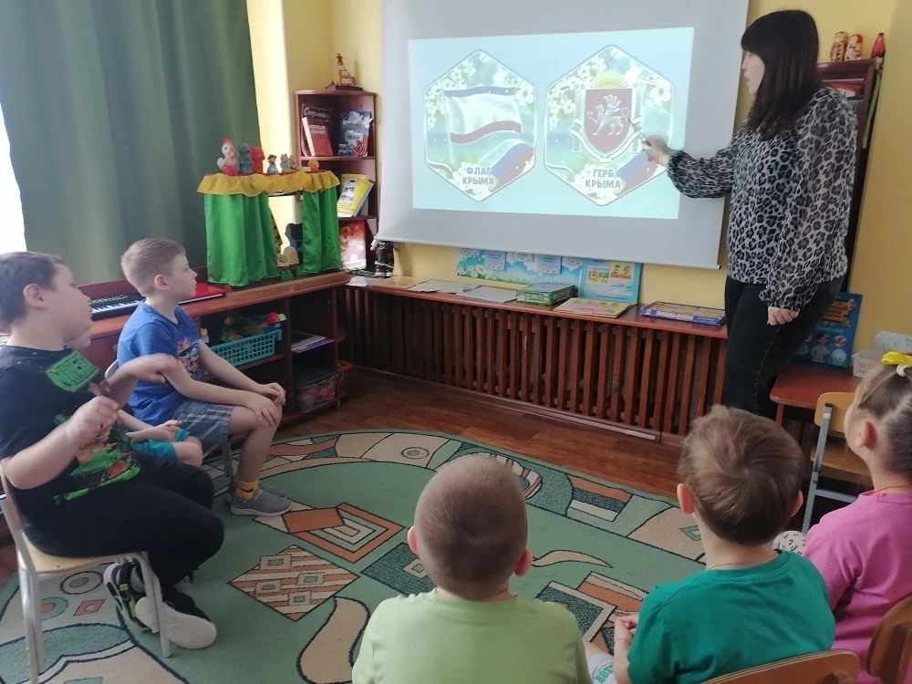 Дети посмотрели увлекательную презентацию «Крым и Россия. Мы вместе», послушали интересные рассказы воспитателей о Крыме, его природе и достопримечательностях. Они узнали о событиях, произошедших в марте 2014 года, и поняли, почему эта дата важна для каждого жителя России.