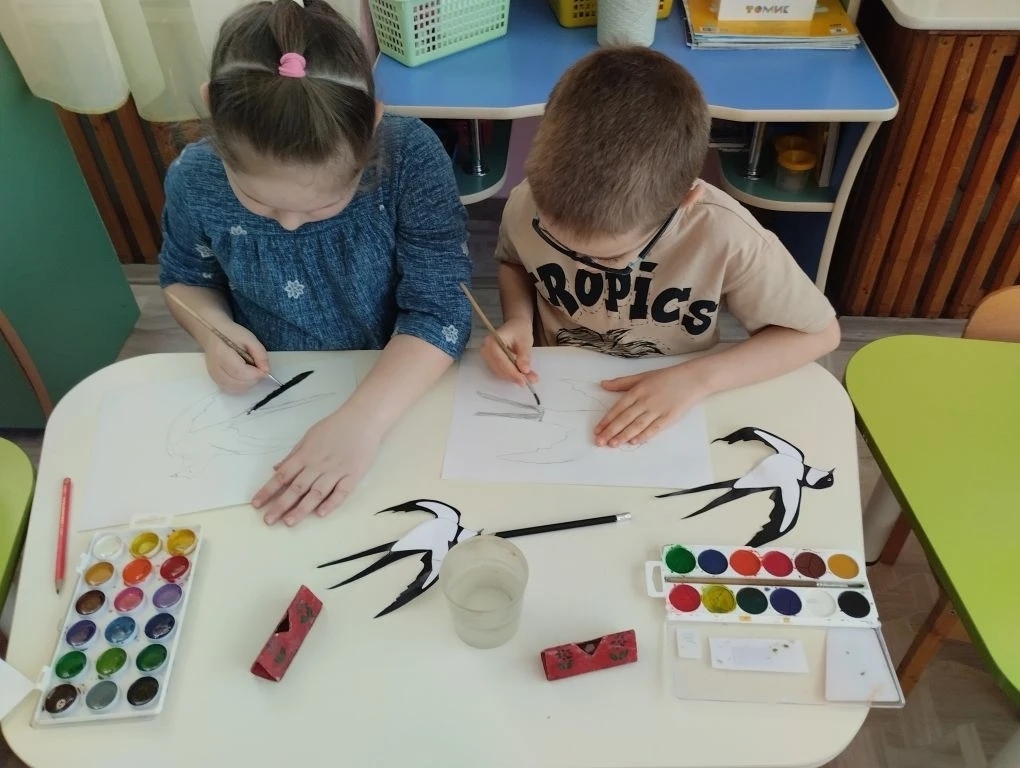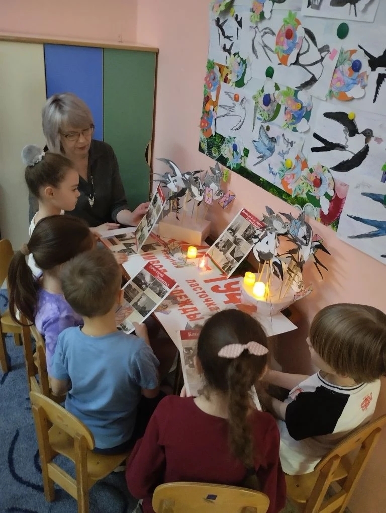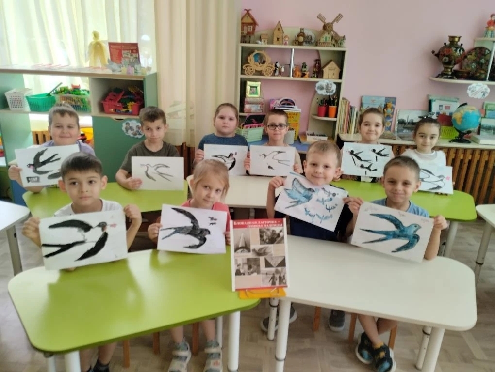 В завершении в рамках Всероссийской акции " Блокадная ласточка" ребята сделали рисунки блокадной ласточки.